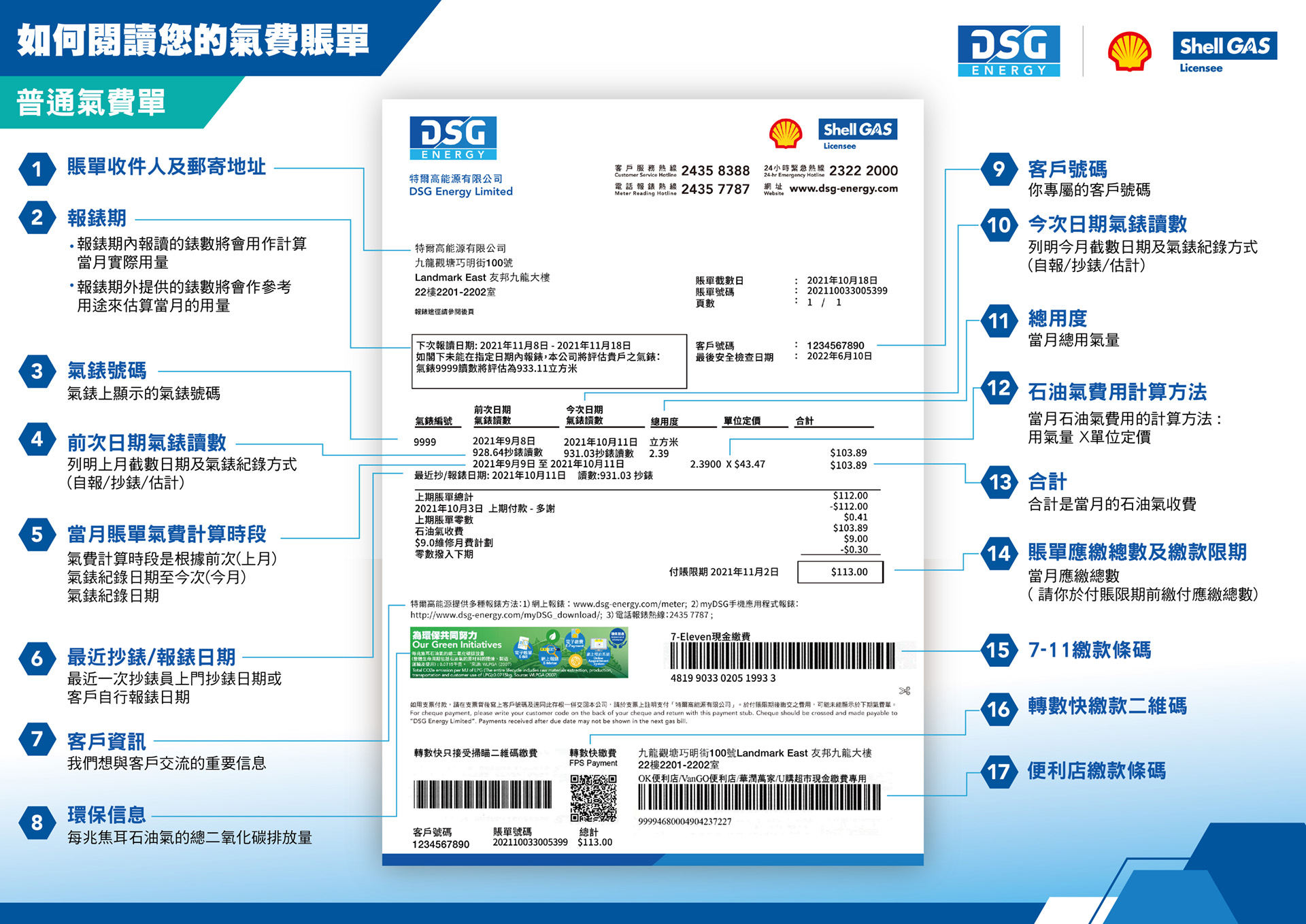 客戶可携同賬單,到供氣地址所屬之門市繳付。詳情可致電客戶服務熱線2435 8388。